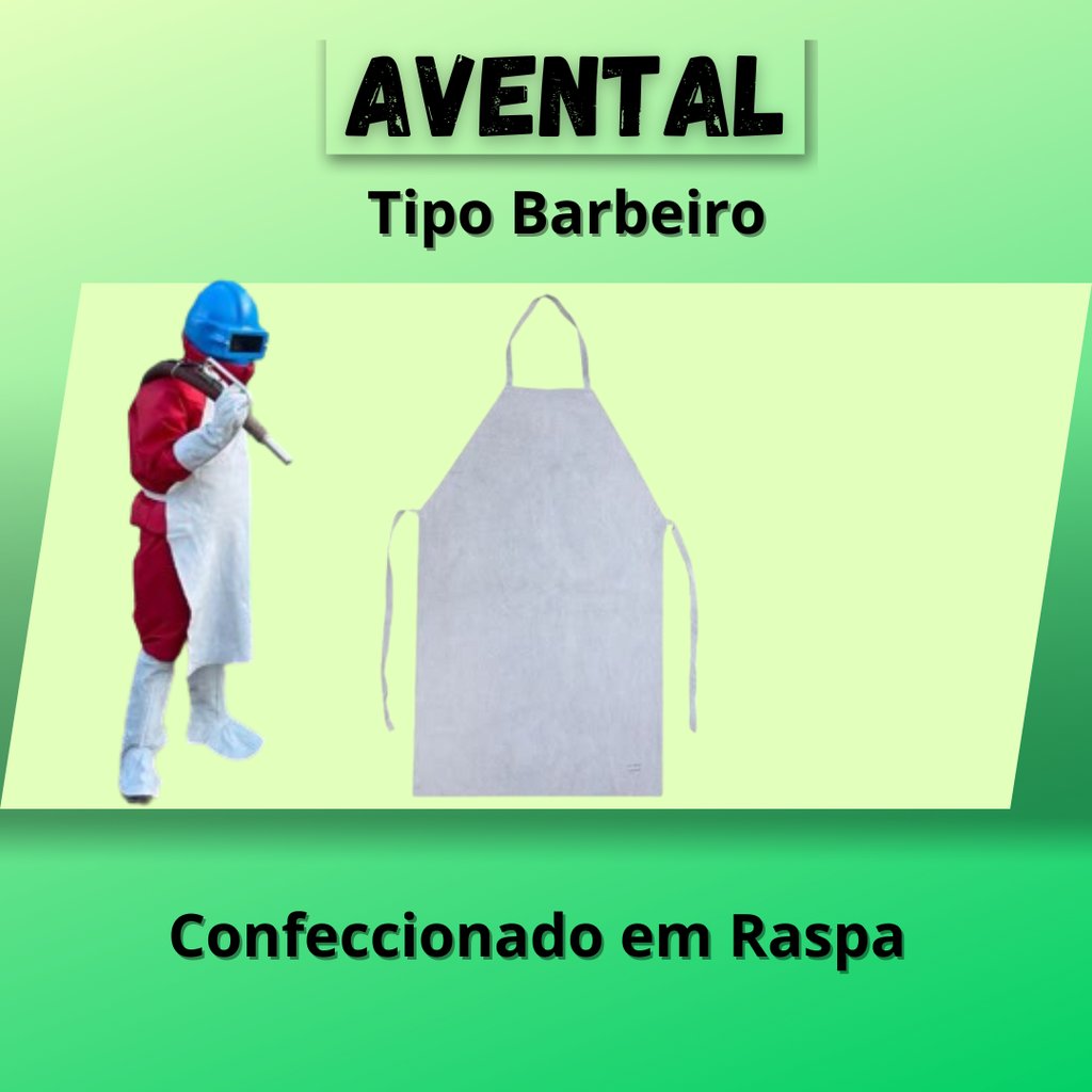 O avental atua como uma barreira de proteção na região frontal do corpo, reduzindo o impacto direto das partículas abrasivas.