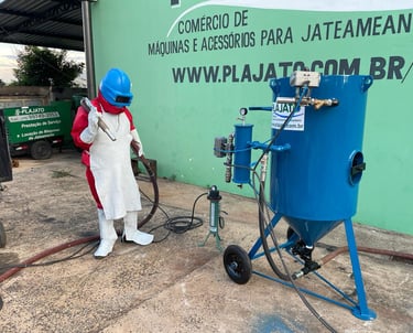Os Equipamentos de Proteção Individual (EPI’s) são indispensáveis no processo de jateamento, garantindo a segurança do operador diante de condições como poeira, impacto de partículas, ruído e baixa visibilidade.