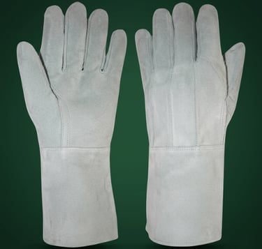 Proteção reforçada para mãos e braços no processo de jateamento.